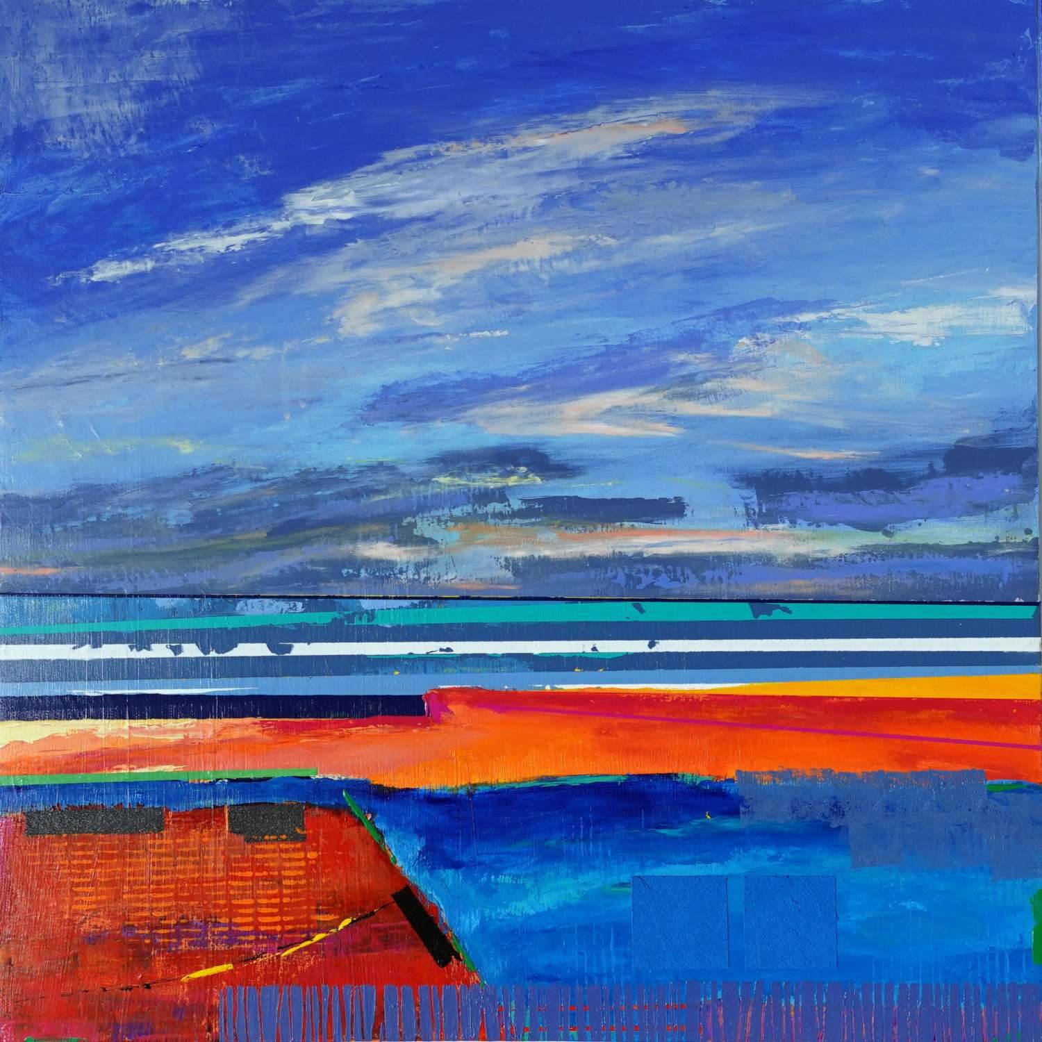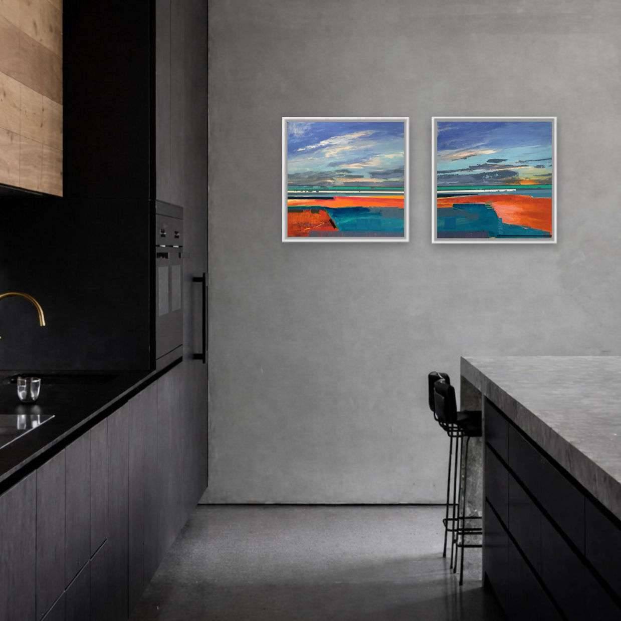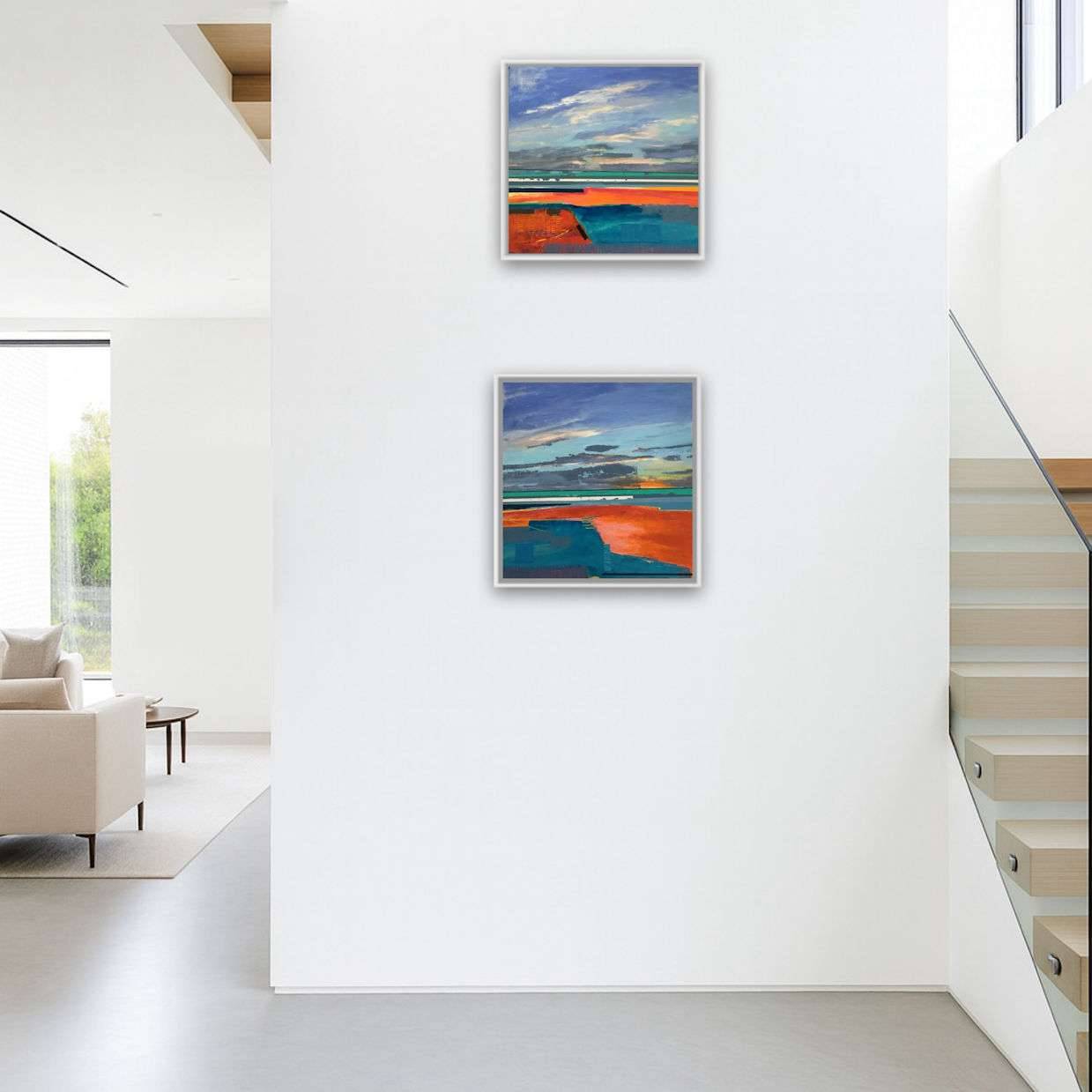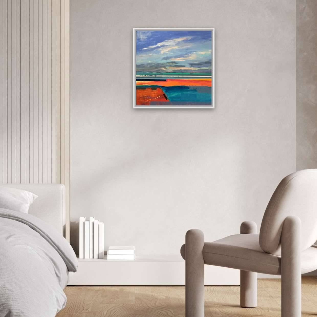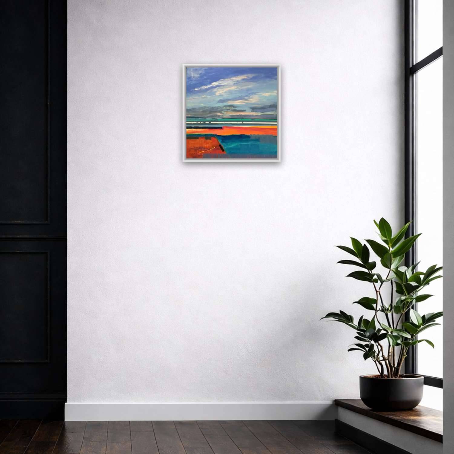 A Warm Day - Original abstract painting by Jenny. Ready to hang. A contemporary square shape 40 x 40cm in a white wooden frame