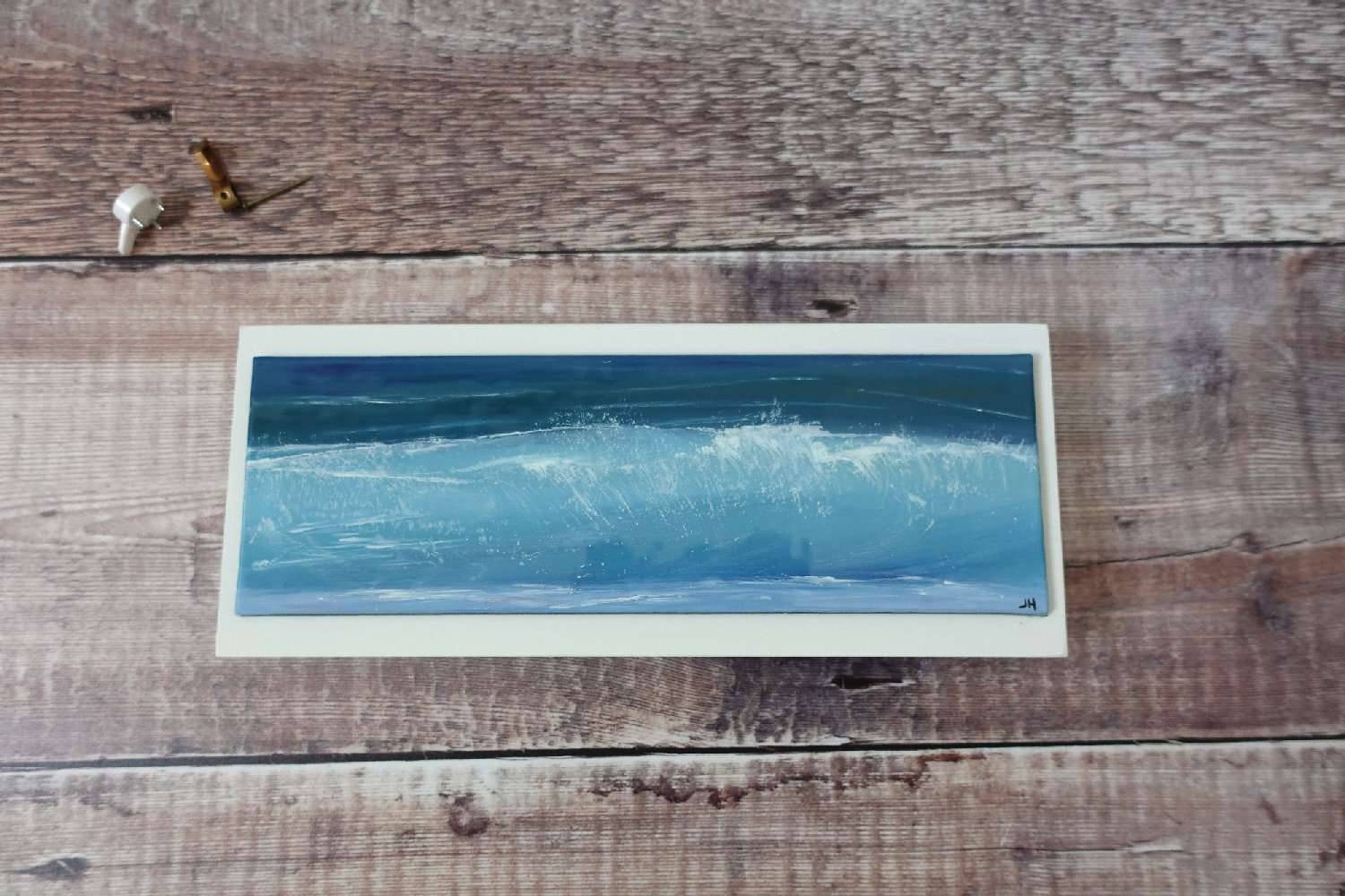 Size: 24 x 10cm and mounted on a warm white, wooden panel 18mm deep.