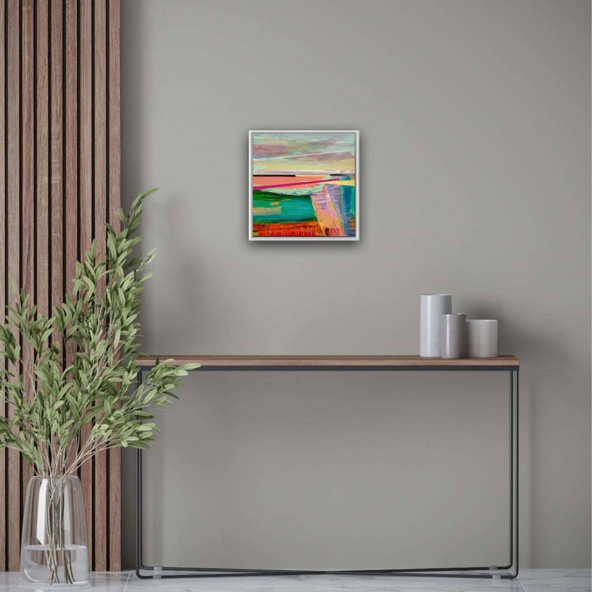 20x20cm painting in a white wooden frame.