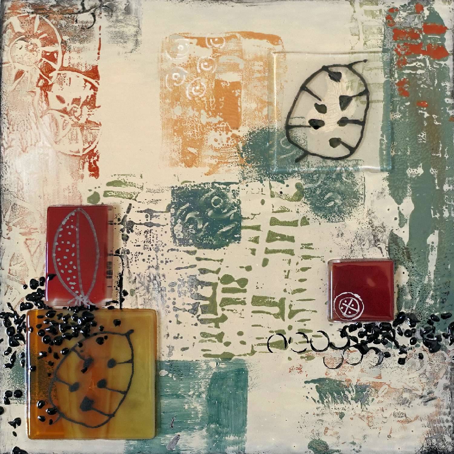 Fused glass and enamel Wall Panel. Vanilla II. Ready to hang with a brass fitting.